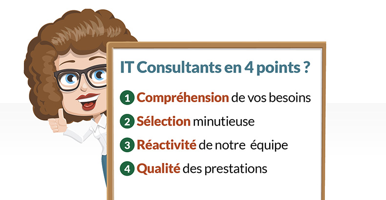 IT Consultants est une jeune SSII créée en 2005 par une informaticienne dont les valeurs essentielles sont la Transparence et la Qualité. Transparence vis-à-vis des clients, salariés et sous-traitants.